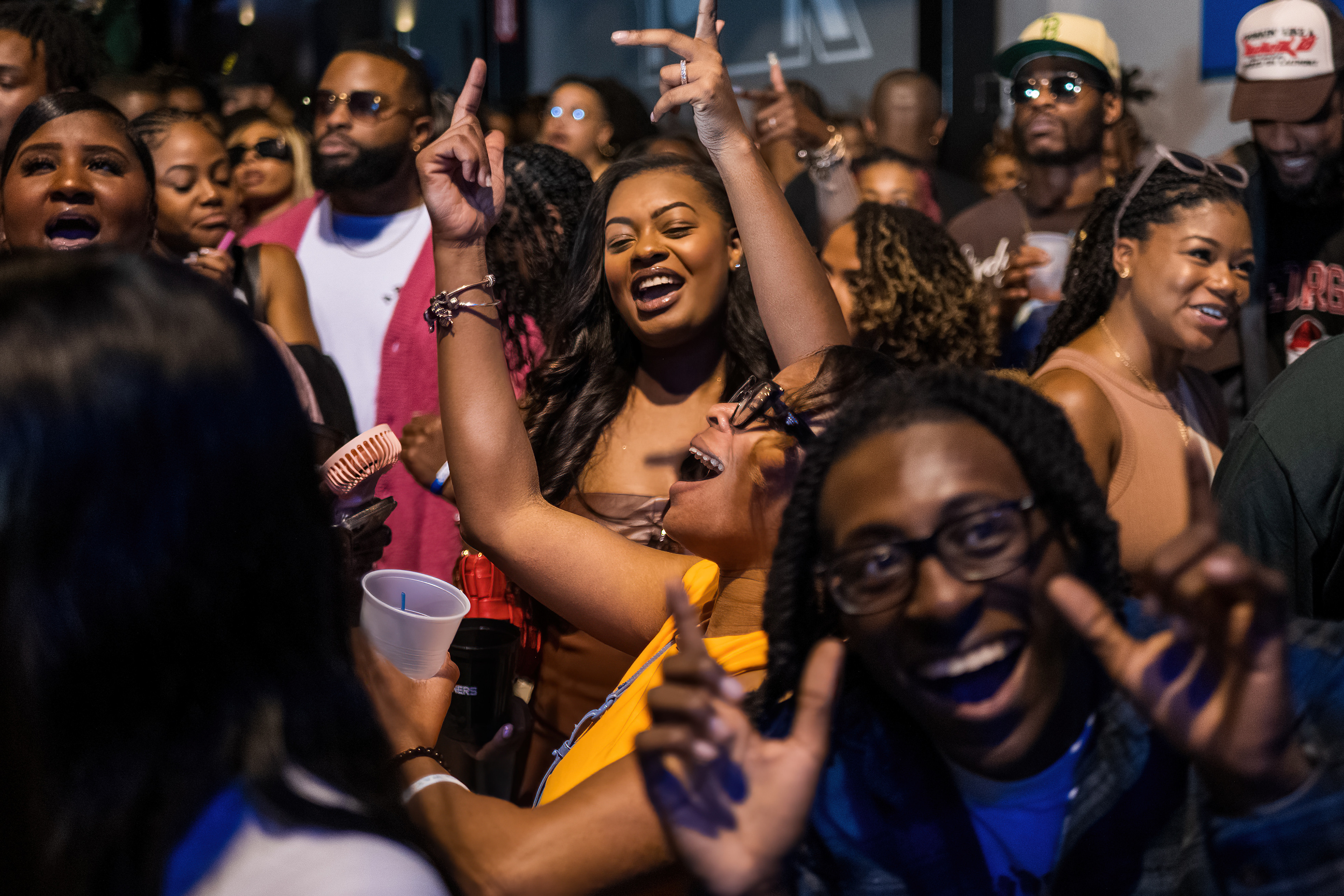 Crowd enjoys live DJ during Strictly Social NC's New Years Eve Masquerade Ball on December 31, 2021.