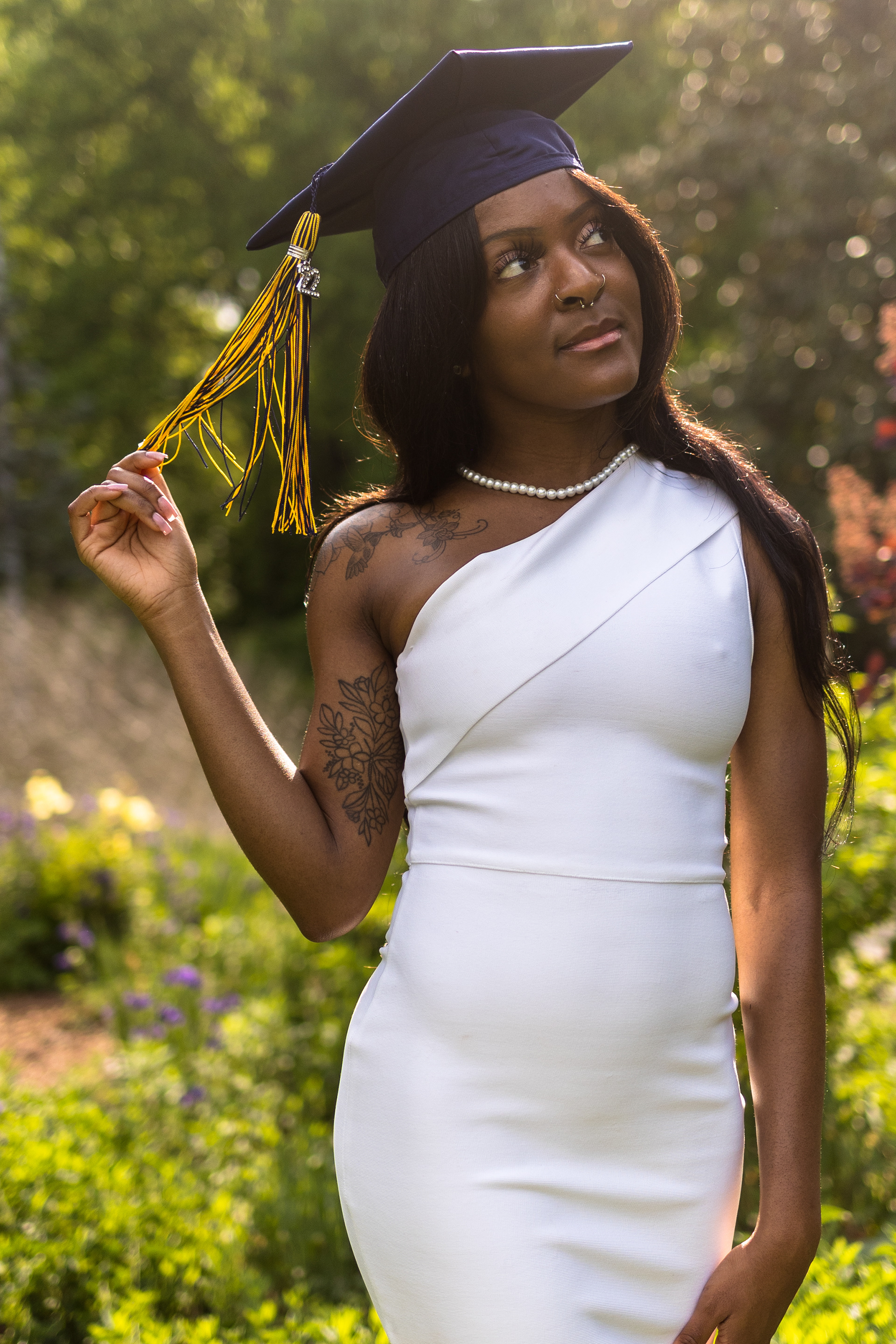 Khwezi Nxasana reaches for butterfly during a portrait shoot at the Tanger Family Bicentennial Garden in Greensboro, N.C., on August 26, 2020